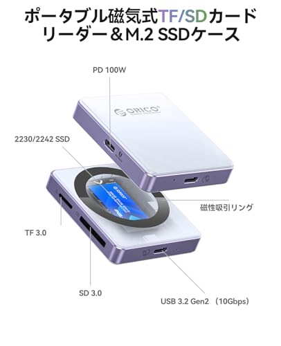 アマゾンで3千円台で5 in 1 磁気吸着式のSDカードリーダーとPD充電機能を持ったM.2 SSDケースを販売していたので買ってみました。