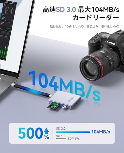 ちょっと気になったのは、SDカードが裏返しじゃないと装填できないのと、中までしっかり入らないので最初は不安になりました。でも、SDカードの転送速度も速いので、この辺りはそういうものか、という割り切りですね。
